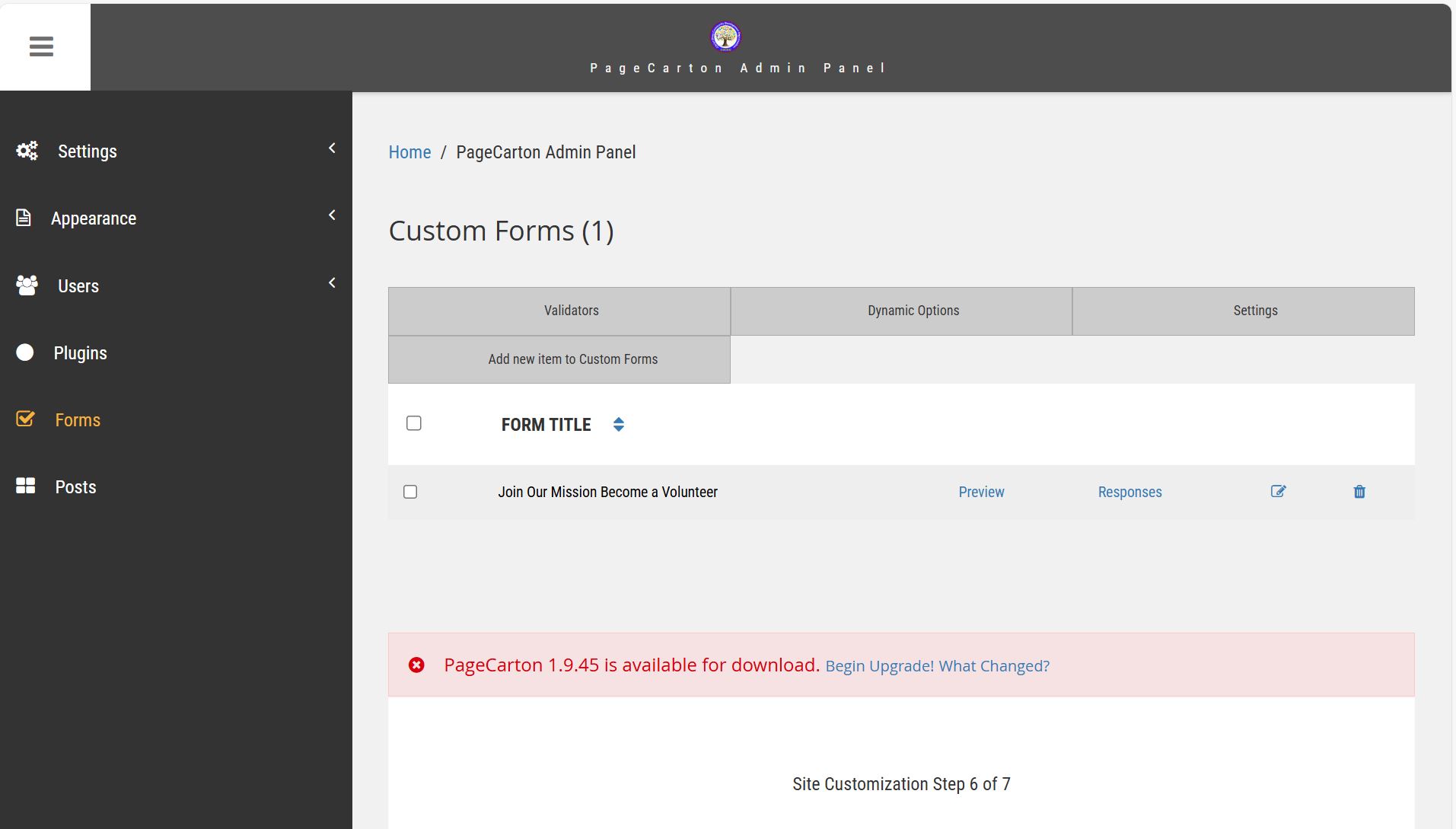 1.     From the admin dashboard, locate Forms