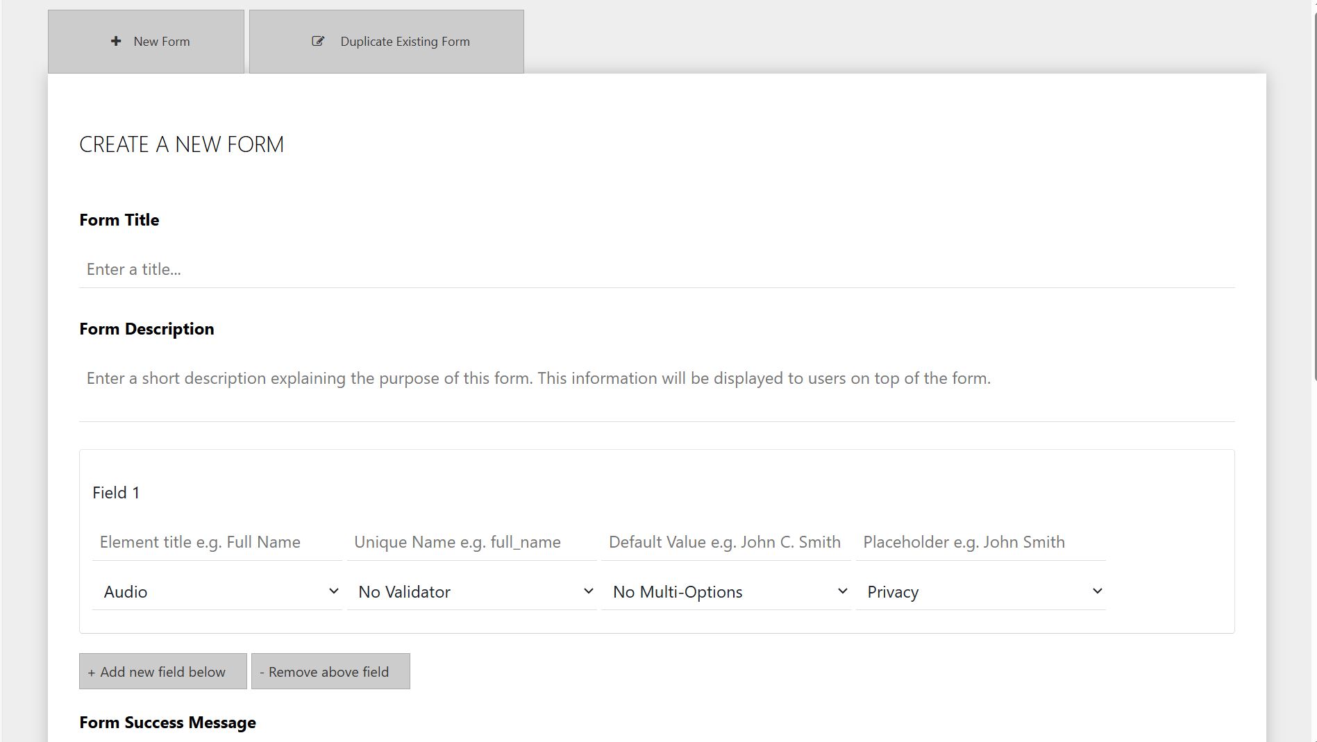3.      Enter a Form Title and Description (e.g. Contact Form).